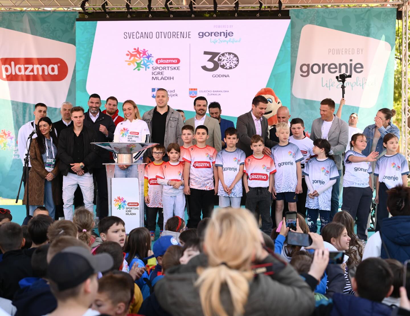 OSIJEK-Više od 3.000 djece okupilo se na Srednjoškolskom igralištu povodom Svečanog otvorenja 30. sezone Plazma Sportskih igara mladih powered by Gorenje. Jubilarna sezona na igralištu Srednjika otvorena je uz pokroviteljstvo Grada Osijeka, a okupljenima se obratio zamjenik gradonačelnika Dragan Vulin: “Iznimno mi je drago što veliki jubilej, 30. obljetnicu Plazma Sportskih igara mladih započinjemo upravo u Osijeku, gradu sporta, gradu koji napreduje u svim segmentima, a rekao bih posebno u sportu. Ovim putem želim vam svima puno uspjeha, a vama želim da se danas družite, natječete i uživate, te da što veći broj vas nastavi baviti sportom.”
